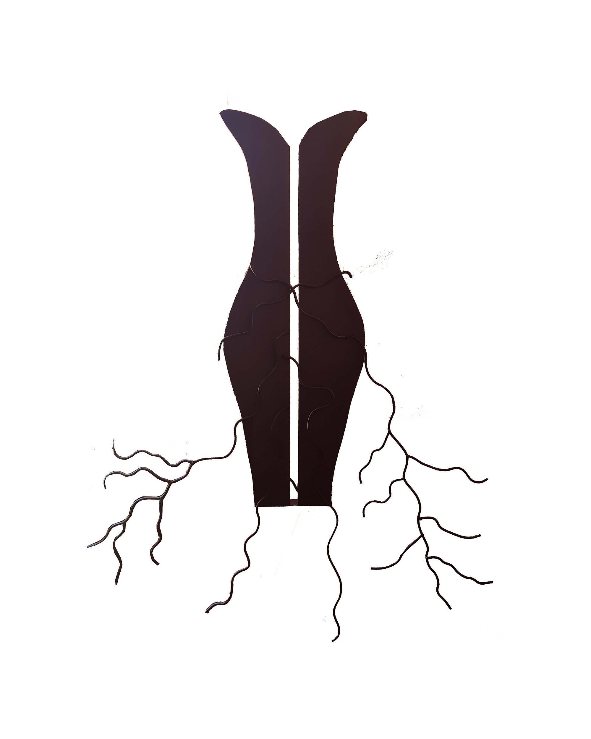 A divisão ao centro reflete a complexidade e a introspecção do universo interno da mulher, enquanto as raízes que brotam sugerem que esse poder não é contido, mas se projeta, entrelaçando-se com o ambiente. O título remete à ideia de que o feminino é uma força em constante crescimento e transformação, uma energia que pulsa e se conecta com tudo ao seu redor.