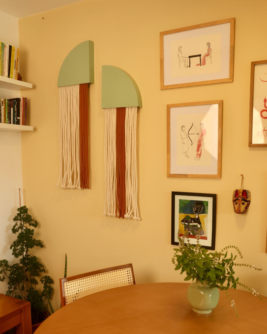 Escultura AS.809 e AS.810, feitas em aço corten e cordas em algodão e cordas sintéticas em tom terroso. Elas podem ser adquiridas em conjunto os separadamente.